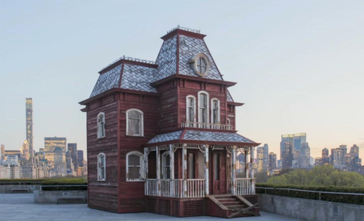 Na koniec chciałabym pokazać Wam szalenie ciekawą instalację, którą w 2016 roku wykonała brytyjska artystka Cornelia Parker na dachu MOMA w Nowym Jorku. Dom będący odwzorowaniem motelu z „Psychozy” na fotografii sprawia wrażenie kompletnej bryły, choć w rzeczywistości składał się z dwóch ścian fasady wspartych na metalowym szkielecie. Czy umieszczony wśród nowoczesnego, żelbetowego świata straszy choć odrobinę mniej? 🙂