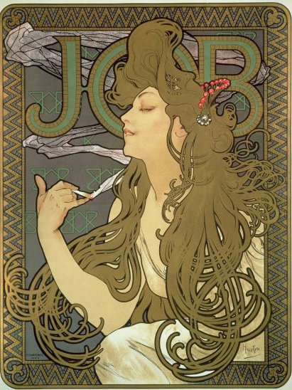 Za ich urok, urodę i niezwykłą dekoracyjność. Gdybym miała zdecydować pomiędzy złoconymi portretami Gustava Klimta a wyidealizowanymi postaciami autorstwa Muchy otoczonymi girlandami z kwiatów i liści zdecydowanie wybrałabym te drugie. Jego kompozycje są linearne, miękkie i bardzo dobrze oddają kluczowe cechy stylu. Secesja kocha plamę barwną oraz kontur, który słusznie przywodzi na myśl stylistykę plakatów, zwłaszcza w wydaniu ojca tego gatunku, Toulouse – Lautreca.