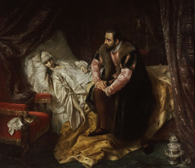 Śmierć Basi Radziwiłłówny widziałam na żywo w warszawskim Muzeum Narodowym. Bardzo smutny widok, kiedy umiera śliczna i młoda istota. Może nie napiszę tego zbyt subtelnie, ale kiedy patrzy się na ten obraz nie ma się żadnych wątpliwości, że widzi się trupa. Zachwycam się doborem farb i wielkim talentem, co pozwoliło ukazać bladość skóry w tym śmiertelnym wydaniu. Pomimo smutnego tematu, jest to widok naprawdę fantastyczny.