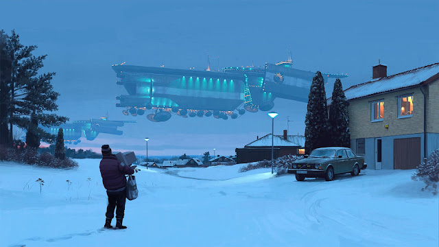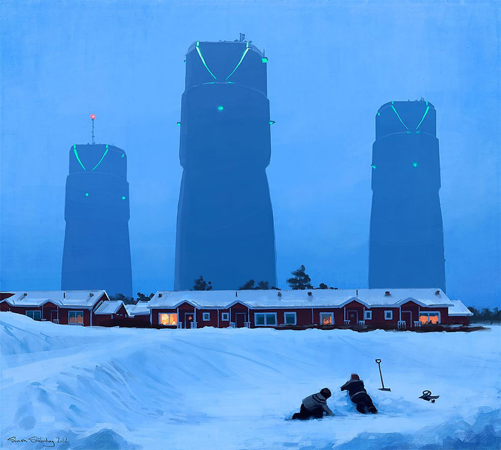 Malarstwo rodem z filmu science fiction? Tak, jeśli mówimy o pracach szwedzkiego malarza Simona Stalenhaga. Jego wizja przyszłości w wspaniały sposób łączy piękno natury i codziennego krajobrazu ze światem robotów i maszyn, które opanowały świat stając się jego integralną częścią. Kultowe motywy i figury znane z fantastycznych filmów zasiedliły skandynawską ziemię, zaburzając sielankowy odbiór prac. Choć ludzie i maszyny zdają się wspólnie egzystować, w powietrzu da się odczuć sporą dawkę grozy i niepokoju, czasami bliską apokaliptycznej wizji przyszłości. Niesamowite prace.