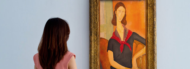 Po tym krótkim wprowadzeniu do miłości malarza z Jeane, chciałabym Wam pokazać ten, wykonany w 1919 roku, portret dziewczyny. Ktoś napisał na facebooku, że brzydki, ktoś inny, że bardzo drogi, ponieważ jego estymacja na najbliższej aukcji sztuki dochodzi do 40 milionów dolarów. Pozwólcie, że dziś zupełnie od tego odbiegnę, zostawiając na inny raz dyskusje o charakterystycznym stylu malarza i dziwnych, nieziemskich cenach, jakie obecnie osiągają jego prace.