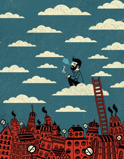 To, co wyróżnia ilustracje Ryskiego to bardzo prosty, czasami wręcz geometryczny sposób uchwycenia rzeczywistości, przywodzący na myśl bajkowy, wesoły świat. Nie ma w tym jednak nic z nadmiernej słodkości – wszystko uchwycone jest w lekko karykaturalny, ale bardzo urzekający sposób. Taka też jest nowa kolekcja Medicine, w której świat kowbojów miesza się z rogatym diabłem, nietoperzami i pędzącym przez miasto, wesołym rowerzystą.