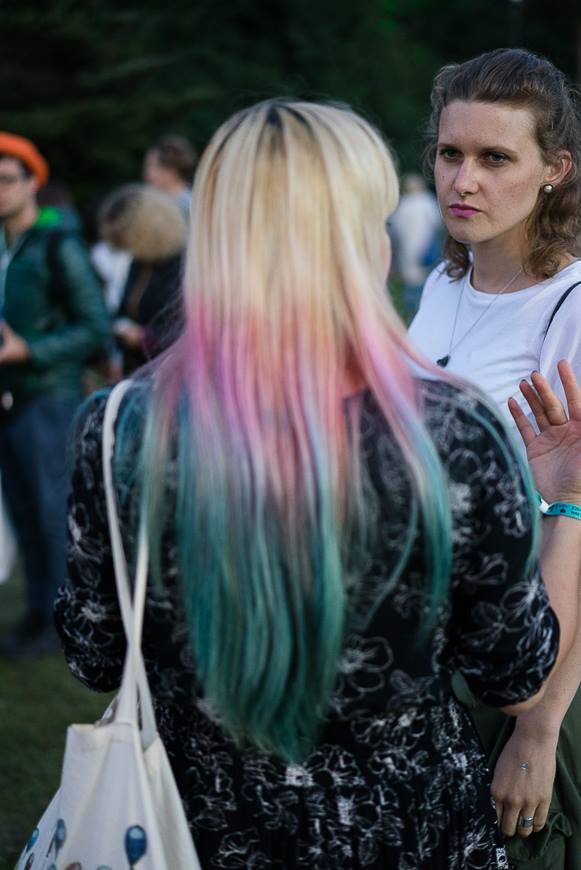 Zastanawiam się teraz, czy to owa magiczna siła nie sprawiła przypadkiem, że będąc w miejscu tak tłocznym, pełnym kolejek po piwo, czy do niebieskich toalet, zupełnie nie zwróciłam uwagi na fakt, że otoczona jestem tłumem, który tak mnie skutecznie za każdym razem odstrasza? Czy wobec tłumu można zastosować określenie, że był ładny? Bo ten, który towarzyszył mi na OFFie, nie przypominał w niczym żadnego innego, jaki miałam okazję spotkać – był ciekawy, wytatuowany, niezwykle kulturalny, i zamiast atakować mnie, z wielkim impetem napierał jedynie pod różne sceny, bawiąc się i tańcząc w swoim świecie. To był fajny tłum, i dopiero w ostatni dzień zaczęła doskwierać mi niegasnąca chęć ewakuowania się do mojego sądeckiego, prowincjonalnego światka. Trzy dni wśród kilku tysięcy ludzi z poczuciem wewnętrznego spokoju i uśmiechem na twarzy? Naprawdę niezły wynik, wierzcie mi.