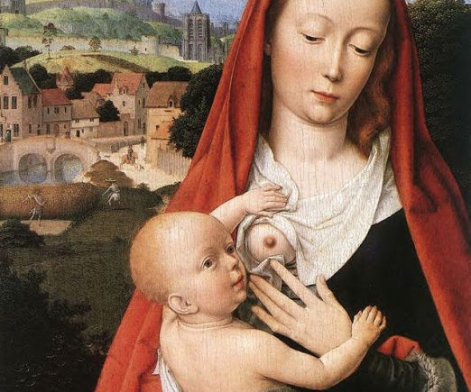 Jak widać Matka Boża wystawia biust do karmienia już od czasów sztuki średniowiecznej, bo to własnie wtedy dopatrywać się można pierwszych prac o tej macierzyńskiej tematyce.