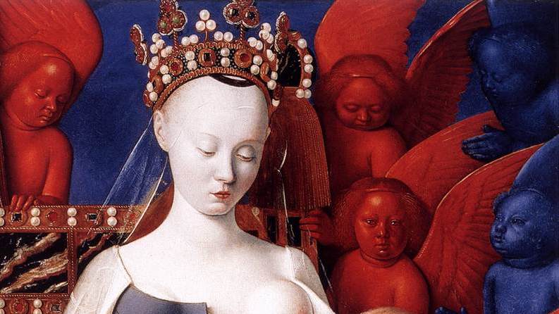 | Jean Fouquet, Madonna wśród aniołów, detal, ok. 1450 |