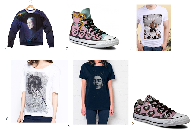 3. Ubrania ze sztuką, zarówno z motywami malarskimi, jak i z ilustracjami współczesnych artystów grafików. Nie znam miłośnika sztuki, który nie chciałby założyć na siebie bluzy bądź koszulki z ulubionym obrazem, czy fajnym motywem w stylu wintydż!