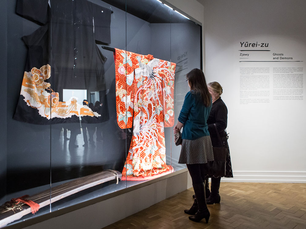 Czystość ścian i wnętrz pozwala maksymalnie skupić się na prezentowanych drzeworytach, które zawsze opatrzone są niezbędnym i ciekawym komentarzem, ułatwiającym przynajmniej częściowe zrozumienie tego tajemniczego i egzotycznego świata, pełnego wojowników, domów uciech, ekskluzywnych kurtyzan i eterycznych dziewcząt przedstawionych w czasie różnych domowych czynności. Dodatkowo, przestrzeń ekspozycyjna została podzielona na kilka wyodrębnionych stref, a każdej z nich towarzyszy obszerny komentarz wyjaśniający zgrupowane dzieła. Mamy więc sale poświęcone kanonom urody japońskich kobiet, macierzyństwu, mamy przedstawienia aktorów z japońskiego teatru, kobiety-wojowniczki, kurtyzany czy w końcu drzeworyty o tematyce erotycznej. Te ostatnie można oglądać zerkając w wysokie gabloty – to ciekawe rozwiązanie umożliwiające subtelna cenzurę dla małych dzieci.