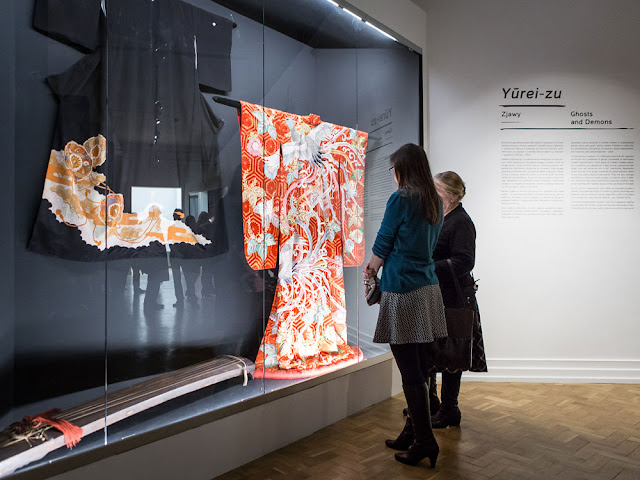 Drzeworyty mocno zachwycają, podobnie jak dodatkowe elementy uzupełniające wystawę, takie jak maski z teatru nō, kimona, ozdoby do włosów, przepiękne grzebyki i przybory kosmetyczne. Dla mnie, kobiety ze wzrostem 180 cm wszystkie te stroje wydawały się być wręcz miniaturowe, a więc jeszcze bardziej egzotyczne, tajemnicze. Przyznaję, że po powrocie do domu zaczęłam intensywnie rozczytywać się w różnych artykułach o japońskiej sztuce, która, jak wiadomo, wywarła ogromny wpływ na sztukę europejską na przełomie XIX/XX wieku. Żeby tak każda wystawa, którą mam okazję oglądać wywoływała u mnie tak pozytywne uczucia i motywowała do pogłębiania danego tematu – ach, marzenie!