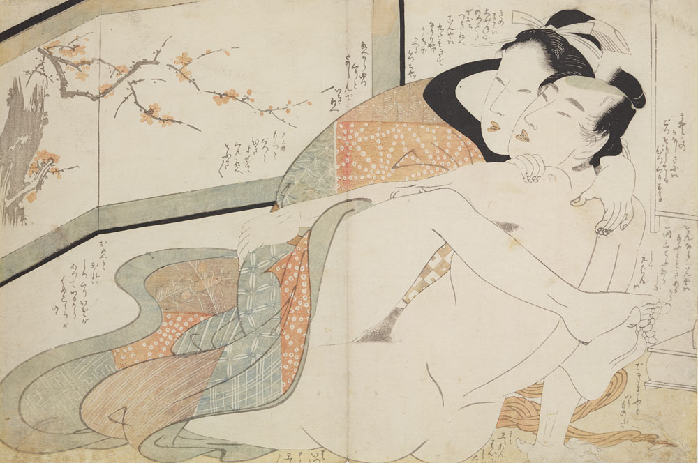 | Kitagawa Utamaro, „Para kochanków przy parawanie”, kartka z albumu Komachi Biki, 1802, wł. MNK |