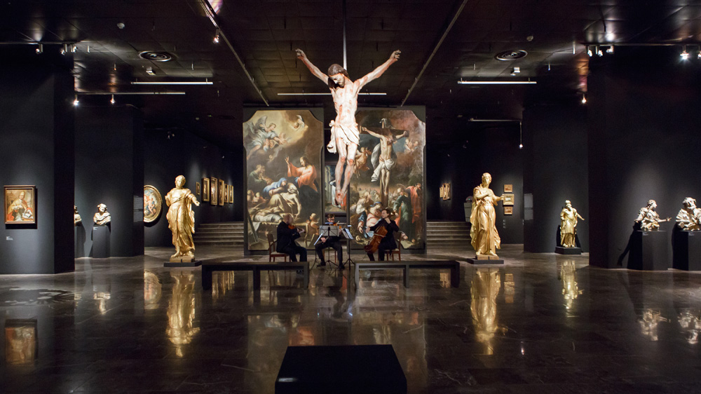 „Skarby baroku” zachwycają mnie niezwykle właśnie ze względu na wspomniany całokształt, doskonale przemyślaną i imponującą aranżację miejsca, które z muzealnej sali przemieniło się na moment w przestrzeń niezwykłą, swego rodzaju sacrum. Czarne ściany, przygaszone światło, muzyka barokowa sącząca się dyskretnie z głośników, ciepłe, złote światło oświetlające punktowo niezwykłej klasy sztukę barokową z terenów dzisiejszej Słowacji i Polski- wszystko to składa się na wielkie, duchowe wręcz przeżycie. Eksponaty na wystawie w znakomitej większości reprezentują sztukę sakralną, a w takim wypadku zawsze bardzo ciężko jest sprawić, aby aranżacja wnętrza wystawienniczego był choć częściowo zbieżna z przestrzenią kościelną, stanowiącą środowisko naturalne dla wszystkich rzeźb, obrazów oraz paramentów liturgicznych. Tym bardziej praca krakowsko-słowackiego zespołu przygotowującego wystawę zasługuje na docenienie i wielki szacunek, udało im się bowiem sprawić, że uczucie sacrum podczas zwiedzania dotyka już na samym początku, towarzysząc nieustannie aż do wyjścia. Świetna robota, jestem zachwycona.