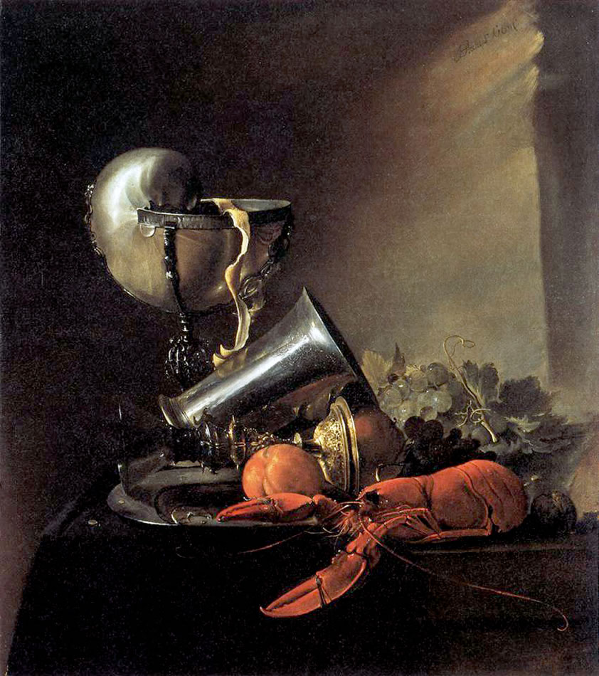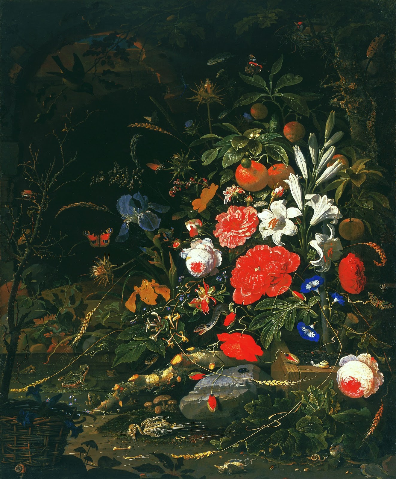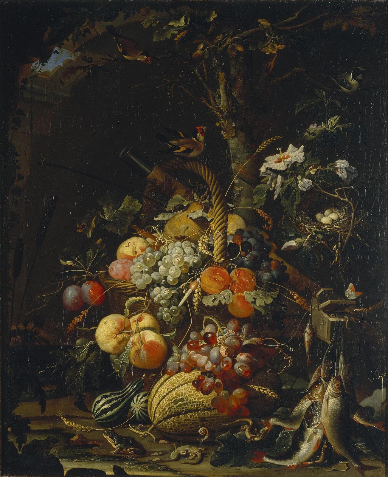 | Abraham Mignon, „Martwa natura z owocami, rybami i ptasim gniazdem”, II poł. XVII w. |