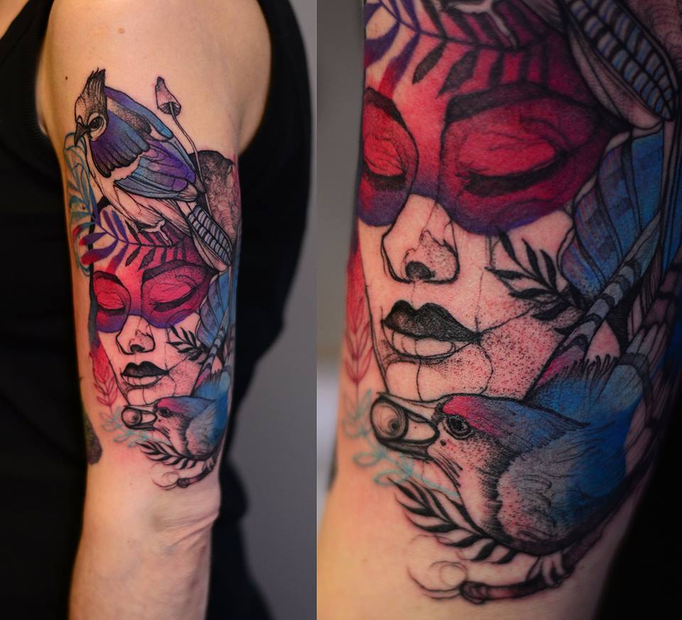 Patrząc na barwne projekty Dżo lamy aż ciężko uwierzyć, że mamy do czynienia z prawdziwymi tatuażami. Niezwykła lekkość i malarskość tych dzieł w pierwszej kolejności przywodzi na myśl eteryczne akwarele, które, jak widać, można z powodzeniem tworzyć także na skórze. Przyznaję, że nie jestem wielką fanką barwnych tatuaży, ale te prace uważam za wyjątkowo piękne. Jeśli ktoś marzy o kolorowym dziele sztuki, niekoniecznie na ścianie i w ramce, to prace Dżo lamy z pewnością spełnią nawet te największe wymagania.
