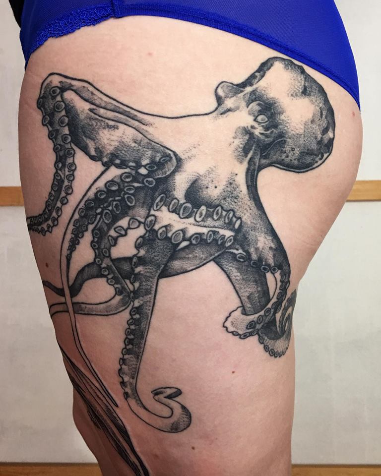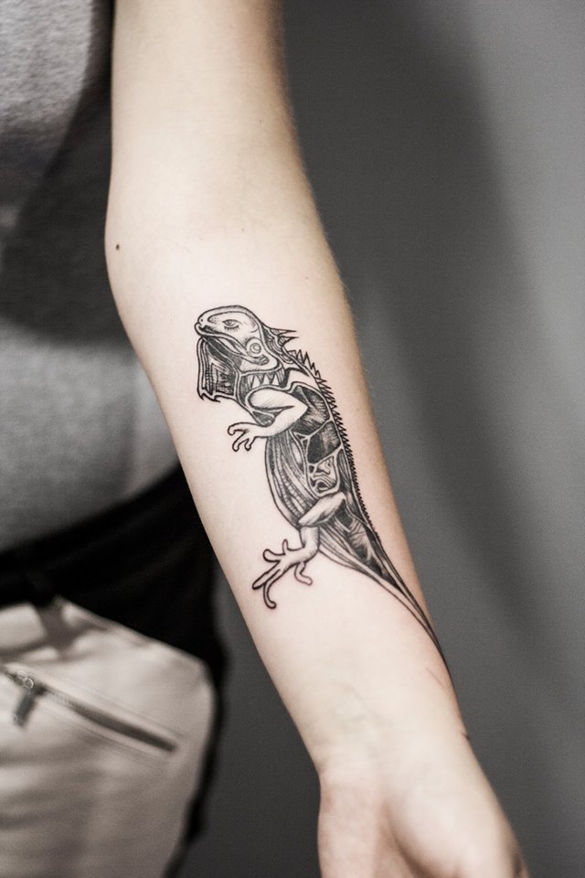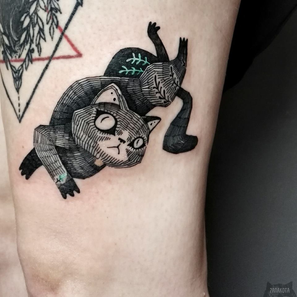 Tatuaże Magdy, kryjącej się pod pseudonimem Panakota pokazują, że zajmując się prostym, na pierwszy rzut oka, zwierzęcym tematem, można robić to w szalenie nowatorski i unikatowy sposób. Artystka postanowiła wykreować swoje zwierzęce uniwersum, bardzo zgrabnie łącząc gatunki znane z tymi, które zrodziły się w jej bogatej wyobraźni. Kreskowany, niezwykle charakterystyczny dla Panakoty styl umożliwia posiadania wzoru, którego po prostu absolutnie nie da się podrobić.