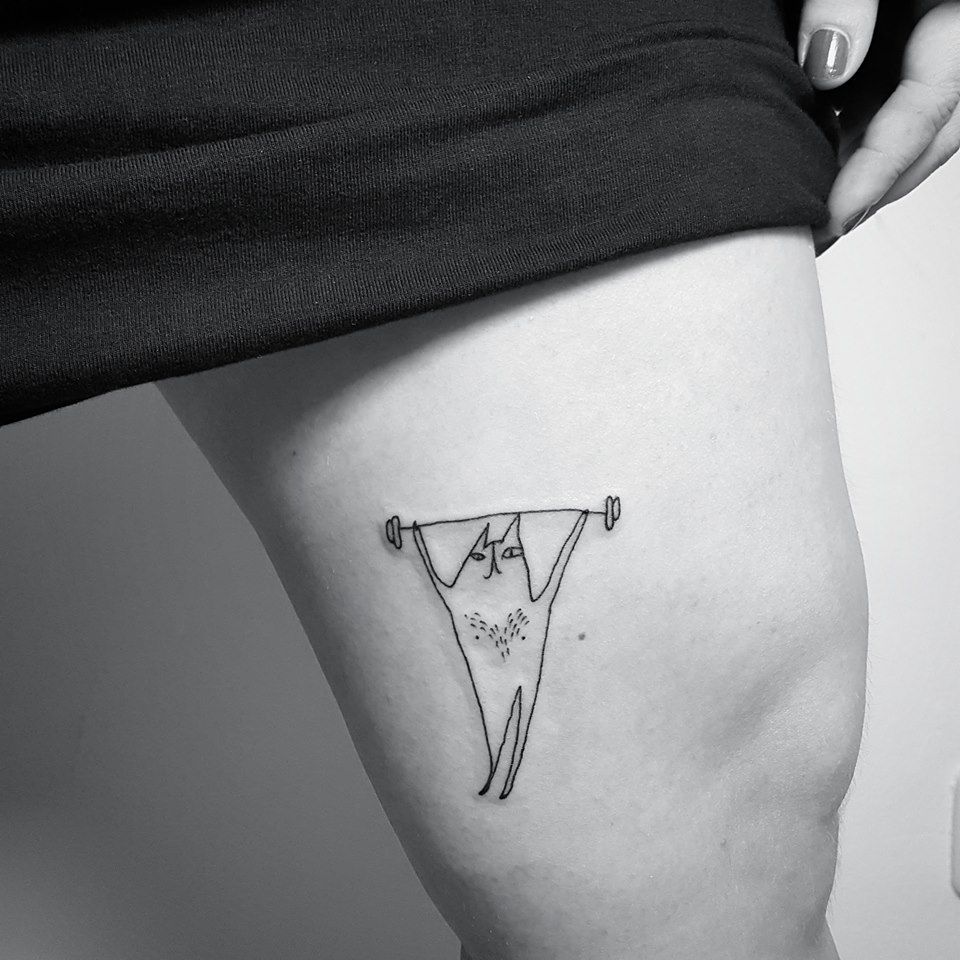 Utalentowana Bianka Szlachta, choć wykonuje wiele różnych projektów, w kosmicznym tempie podbiła serca ludzi Internetu zwłaszcza swoimi urokliwymi tatuażami „brzydkich” kotów. Te proste, minimalistyczne wręcz wzory powstają w stylu, który bardzo ciężko jakkolwiek sklasyfikować. Trochę groteski, trochę karykatury, ale nade wszystko mnóstwo dystansu do świata – to zdaje się wyróżnia specyficzne, lekko pokraczne, ale rozczulające uniwersum artystki. Przyznaję, że jest w tej „brzydocie” przekonujący autentyzm, który w wielu przypadkach będzie podobał się bardziej niż oklepane próby uchwycenia banalnego piękna.