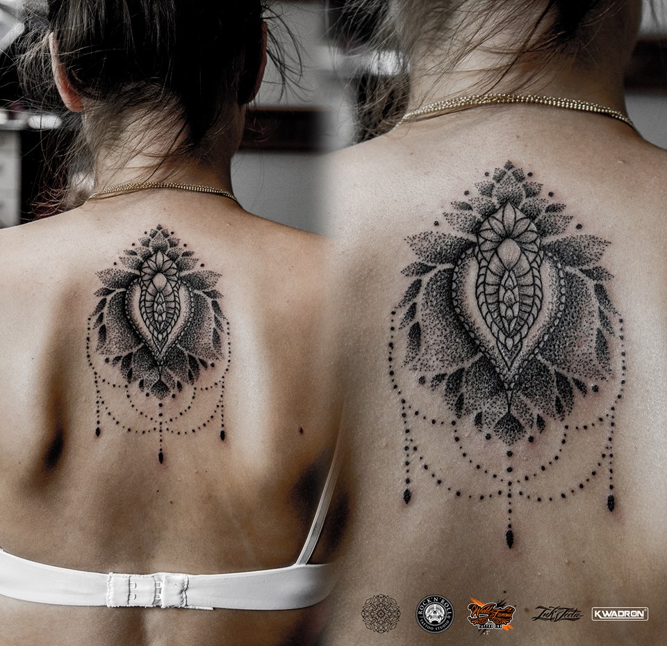 Jakub słynie z umiłowania do ornamentyki i ozdobnych wzorów geometrycznych i roślinnych. Jak sam pseudonim wskazuje, artysta z chęcią tatuuje mandale, a więc motywy artystyczne zaczerpnięte z buddyzmu, ale też wiele innych prac o ornamentalnym charakterze, w myśl zasady: im więcej, tym lepiej (i bez w wątpienia ładniej). Jeśli pragniecie wytatuować sobie ażurowy, dekoracyjny wzór lub macie chęć uwiecznić na plecach ulubiony motyw serwetki zrobionej na drutach, to Mandala z pewnością podejmie się tego zadania z przyjemnością.
