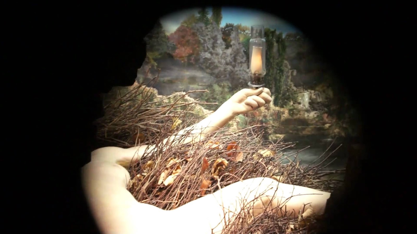 Widok za drzwiami zaskakuje i mocno zawstydza: naszym oczom jawi się bezwładne ciało leżącej na łące nagiej kobiety. Jej nogi są rozchylone, a krocze to centralny punkt, na który patrzymy w zasadzie w pierwszej kolejności. Nie wiemy kim kobieta jest, jej twarz znajduje się już poza zasięgiem naszego wzroku. Może właśnie przed chwilą została zgwałcona? Może ktoś ja skrzywdził, a my, zupełnie obcy, dokładamy do tych wydarzeń kolejną cegiełkę w postaci naszych wścibskich spojrzeń? Tę krępującą sytuację potęguję fakt, że kobieta trzyma w swojej uniesionej lewej dłoni gazową latarnię, która rozświetla scenę, ale też rzuca swoje karcące światło na nas patrzących. Właśnie zostaliśmy przyłapani i dodatkowo nas to zawstydza.