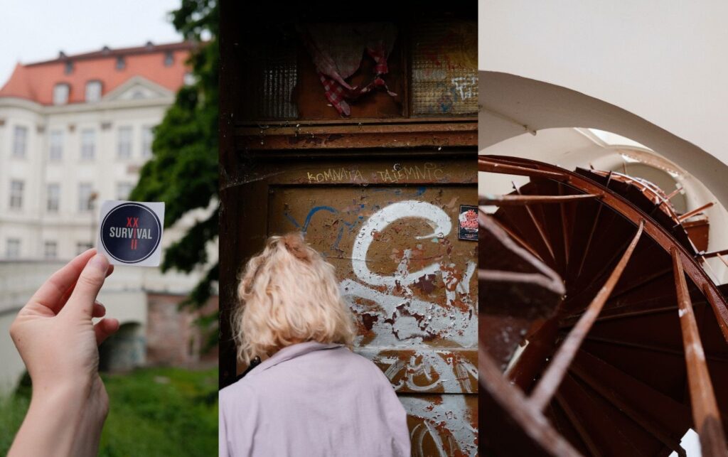 Jako patronka medialna tegorocznego Przeglądu postanowiłam przedpremierowo odwiedzić wrocławską Leśnicę. Tym razem wybór miejsca wystawienniczego, z zasady nieoczywisty, padł na 800-letni Zamek, a dokładniej jego tajemnicze kazamaty. Historyczny obiekt już sam w sobie jest bardzo ciekawy, a otaczający go piękny park doskonale sprawdzi się w czasie trwania festiwalu. Dodatkowym smaczkiem jest fakt, że w kazamatach znajdowała się niegdyś Dyskoteka Forty, której ślady wciąż są widoczne i nadają im dodatkowego nastroju. Podziemia przez długi czas były wyłączone z użytkowania i zostaną ponownie udostępnione po przerwie właśnie w trakcie wydarzenia (serdecznie dziękuję Magdzie i Pawłowi za oprowadzenie mnie po niemal wszystkich zakamarkach Zamku!)