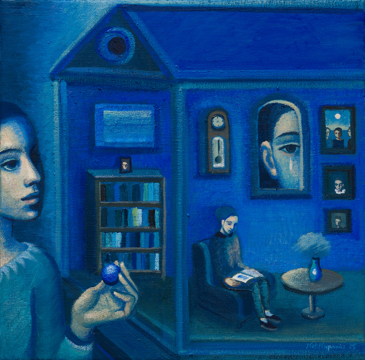 Bardzo cenię subtelność tej sztuki. Ta delikatność materii jest wg mnie cechą charakterystyczną twórczości Kasi. Zawsze maluje z czułością, dba o detale i rozmieszcza je z uwagą, jakby bała się, że pominie coś ważnego. Czuć i widać to wyraźnie w „Niebieskim śnie”, którego kojąca łagodność i nostalgia sprawiają, że błękit zdaje się nas na chwilę pochłaniać i – mimo odczuwalnego smutku – uspokajać. Bliskie mi jest stwierdzenie, że to właśnie w zamyśleniu, czy kontrolowanej melancholii świat, szczególnie ten wewnętrzny, objawia się nam najpełniej. To, co umyka w biegu, dochodzi do głosu właśnie gdy na moment przysiądziemy, skupimy wzrok na jednym punkcie i damy sobie szansę na głębszą refleksję. Polecam Wam serdecznie ten malarski, autorski błękit. Jest pochłaniający, ale w pełni bezpieczny.