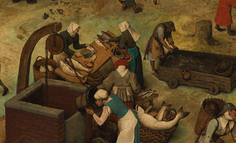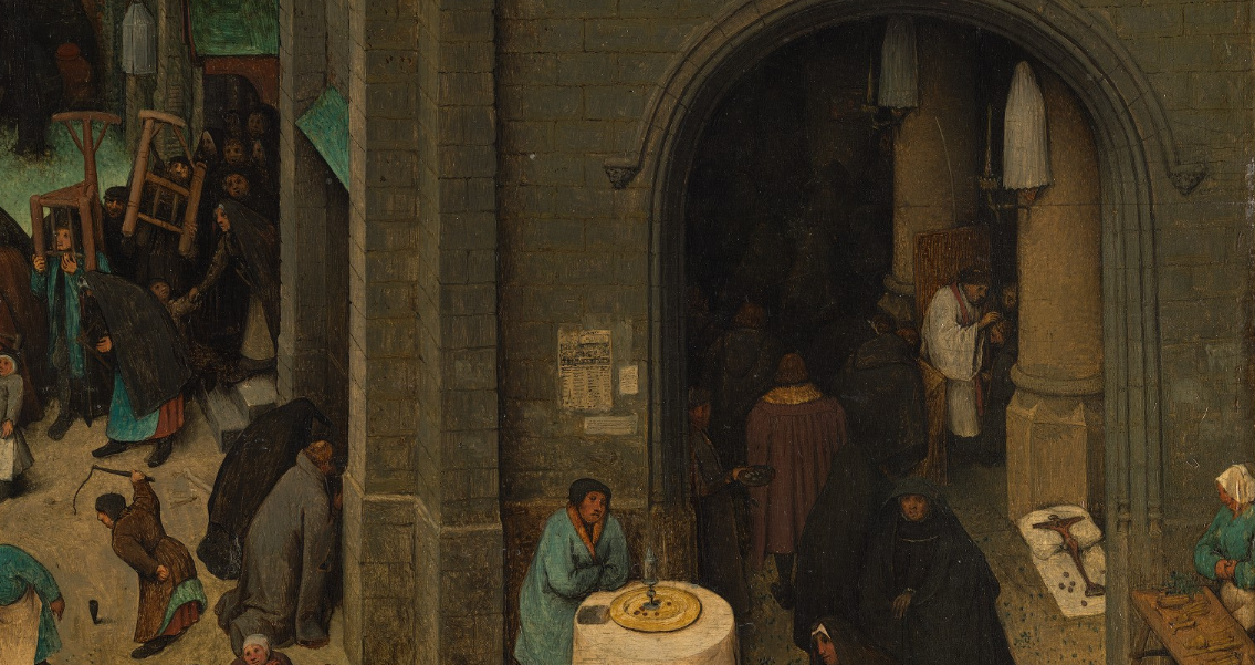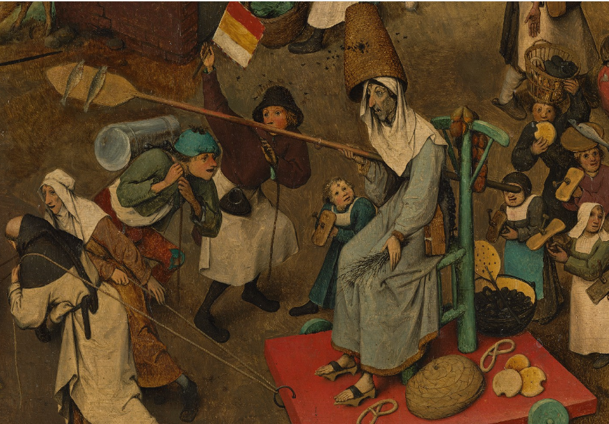 Z okazji pierwszego dnia Wielkiego Postu pomyślałam, że w ramach cyklu „Z bliska” przyglądniemy się wspólnie niezwykłej pracy Petera Bruegla (starszego) pt. „Walka karnawału z postem”. Bruegel znany jest z rozbudowanych, wielowątkowych narracji i kompozycji zaludnionych przez mnóstwo postaci, które „robią rzeczy” i ich objaśnienie wymaga głębszego wglądu w ten hermetyczny świat.